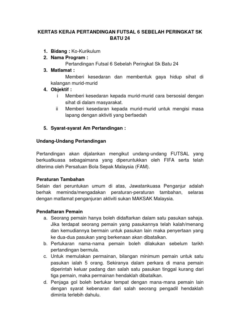 Kertas Kerja Pertandingan Futsal 2018 Pdf